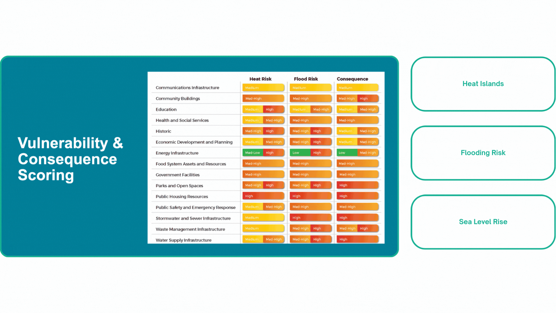 By aligning data, narrative, and visualization, we were able to clearly identify which communities and assets face the greatest future climate risk. Then we aligned priorities with equity goals, supplemental planning under their Climate Equity Action Plan 2030, and moved from fragmented data toward integrated, system-wide decision-making. In addition, these new assets allowed us to build a shared understanding of risk, while prioritizing across departments and with the public.
